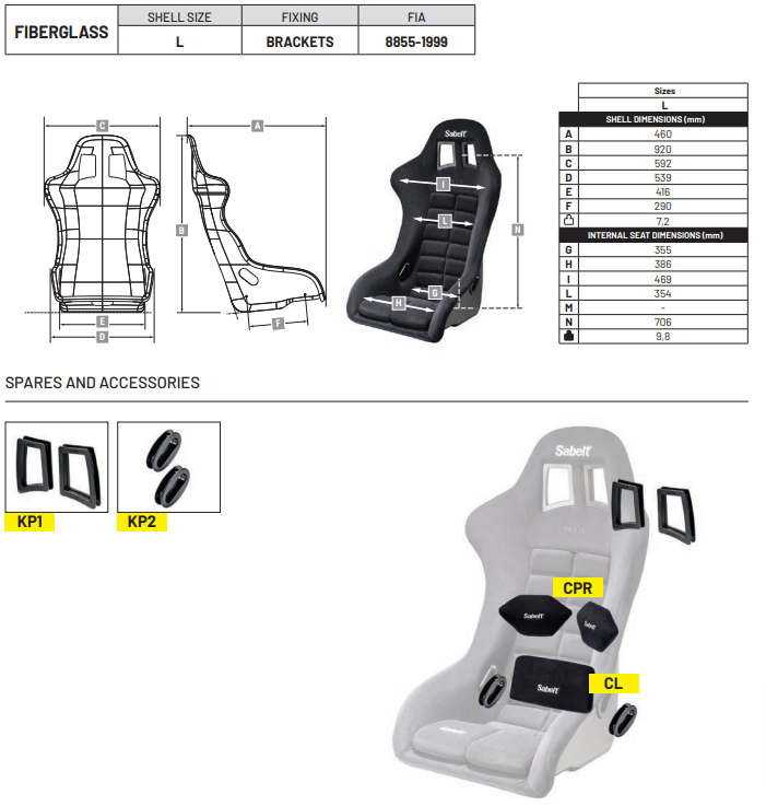 FIA Approved: The Sabelt Titan bucket seat is FIA 8855-1999 approved for 5 years from purchase.