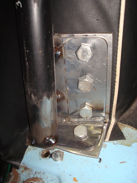 Once the plates are welded and painted, the cage is refitted for the final time. The cage is loosely assembled first, then bolted to the floor mounting points before tightening the cage joints.
