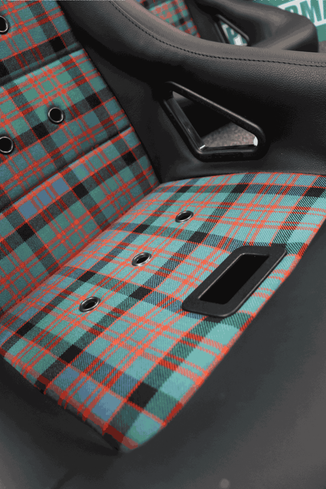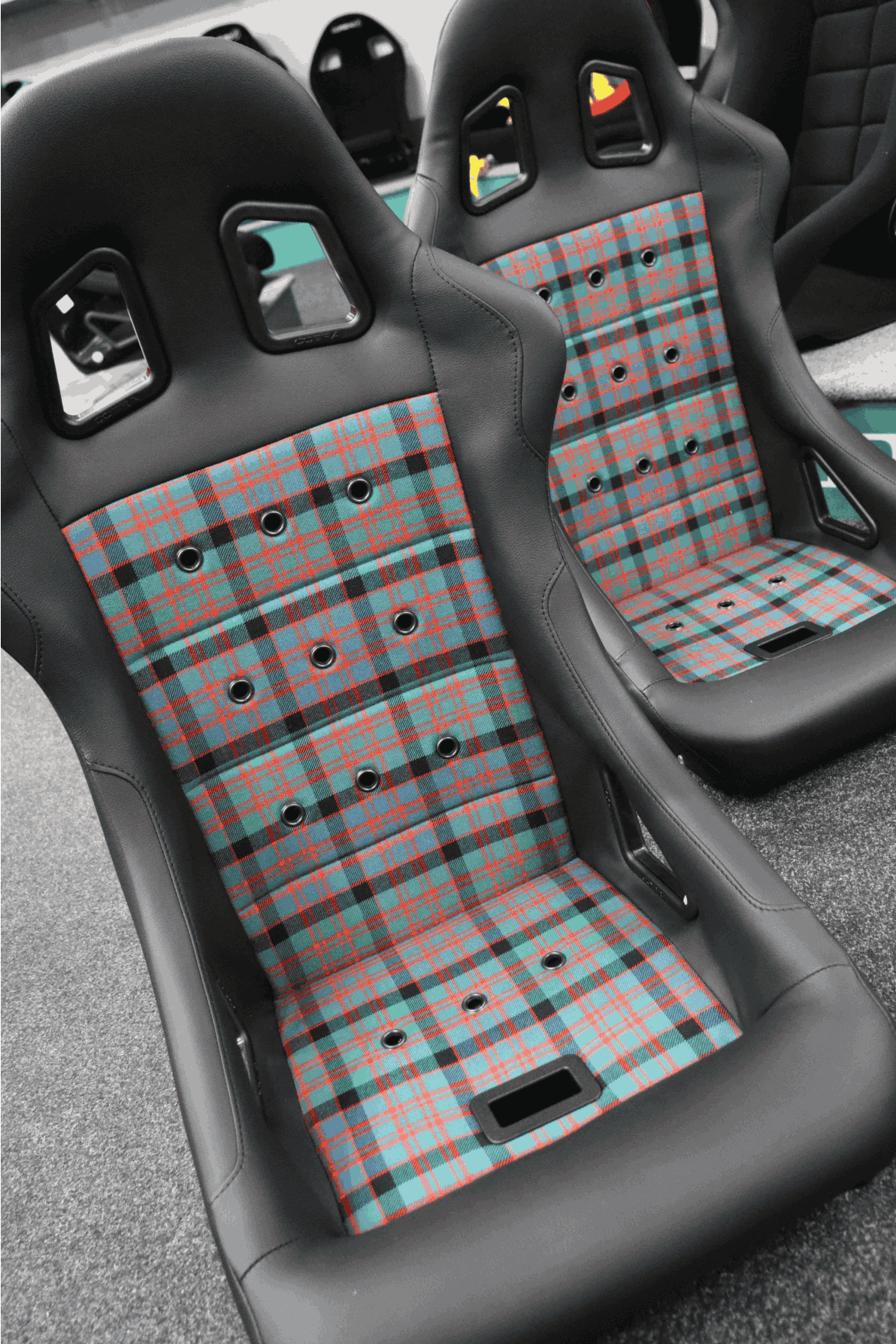 Seeing these seats in person was a real highlight for the team. We carried out our usual pre-delivery quality checks before they were dispatched, and the end result was nothing short of stunning. The vibrant tartan pattern sat beautifully alongside the seat’s vinyl outer trim and classic eyelet detailing, giving the whole seat a retro motorsport look that felt both unique and timeless. It was a reminder of just how far you can take a seat design when working with the right brand and a clear vision.