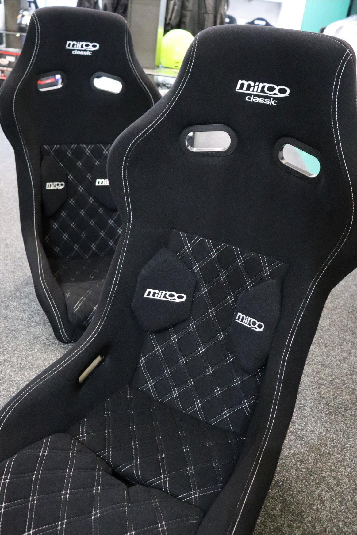 Our showroom now holds every Mirco FIA seat model in a baseline black trim, giving customers the chance to sit in them, check their fit, and decide which model works best. Once you know which seat fits your build, you can then customise it online with all the bespoke options available. This approach gives you the best of both worlds: in-store testing and online tailoring.