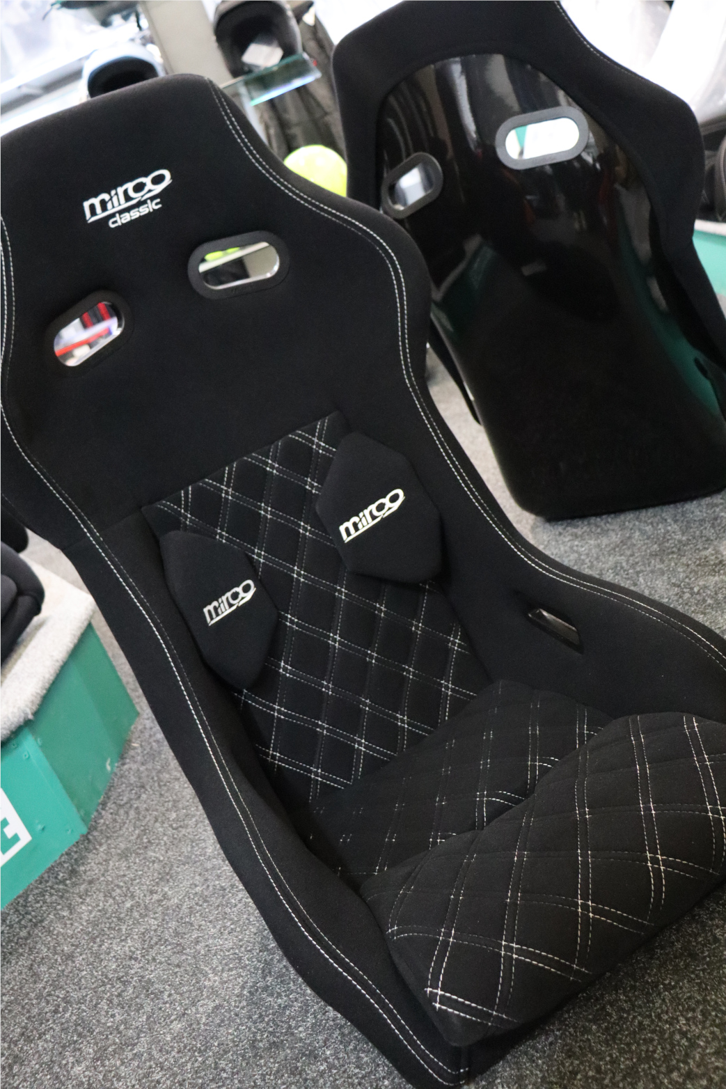 From our latest batch of custom Mirco seats, several standout designs are now available online with the same bespoke options already pre-applied. These include the Mirco Classic Diamond Edition bucket seat. Over the years, we’ve expanded our range of FIA-approved Mirco seats to include pre-configured trim combinations. Whether you want something subtle or a seat with standout contrast stitching, we’ve got a growing library of ready-to-go listings with unique options applied.