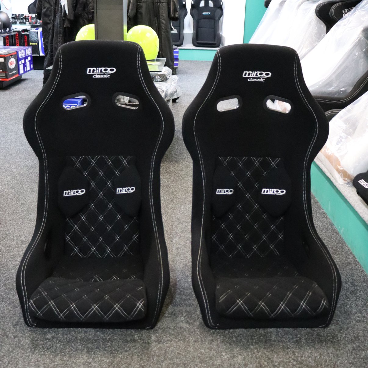We’ve had another exciting delivery arrive at our showroom, and this one really stands out. Every single Mirco FIA bucket seat model has arrived in pairs, finished in either black velour or 3D Spacer fabric, giving our customers the chance to try the full range back-to-back in-store. For anyone unsure about which model will suit them best, it’s the perfect opportunity to sit in each seat, feel the support, and see how the dimensions work with their driving position before committing to a purchase.