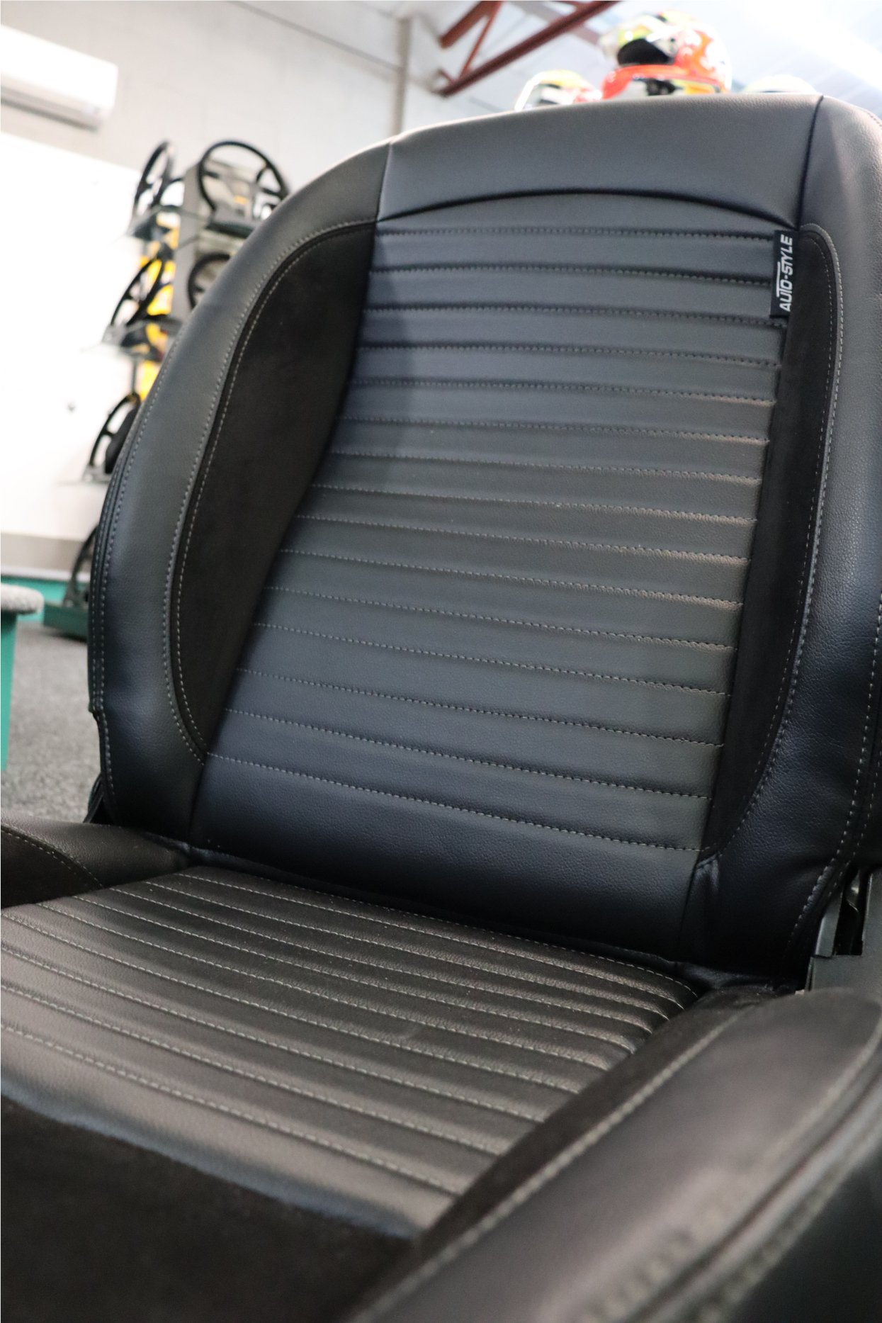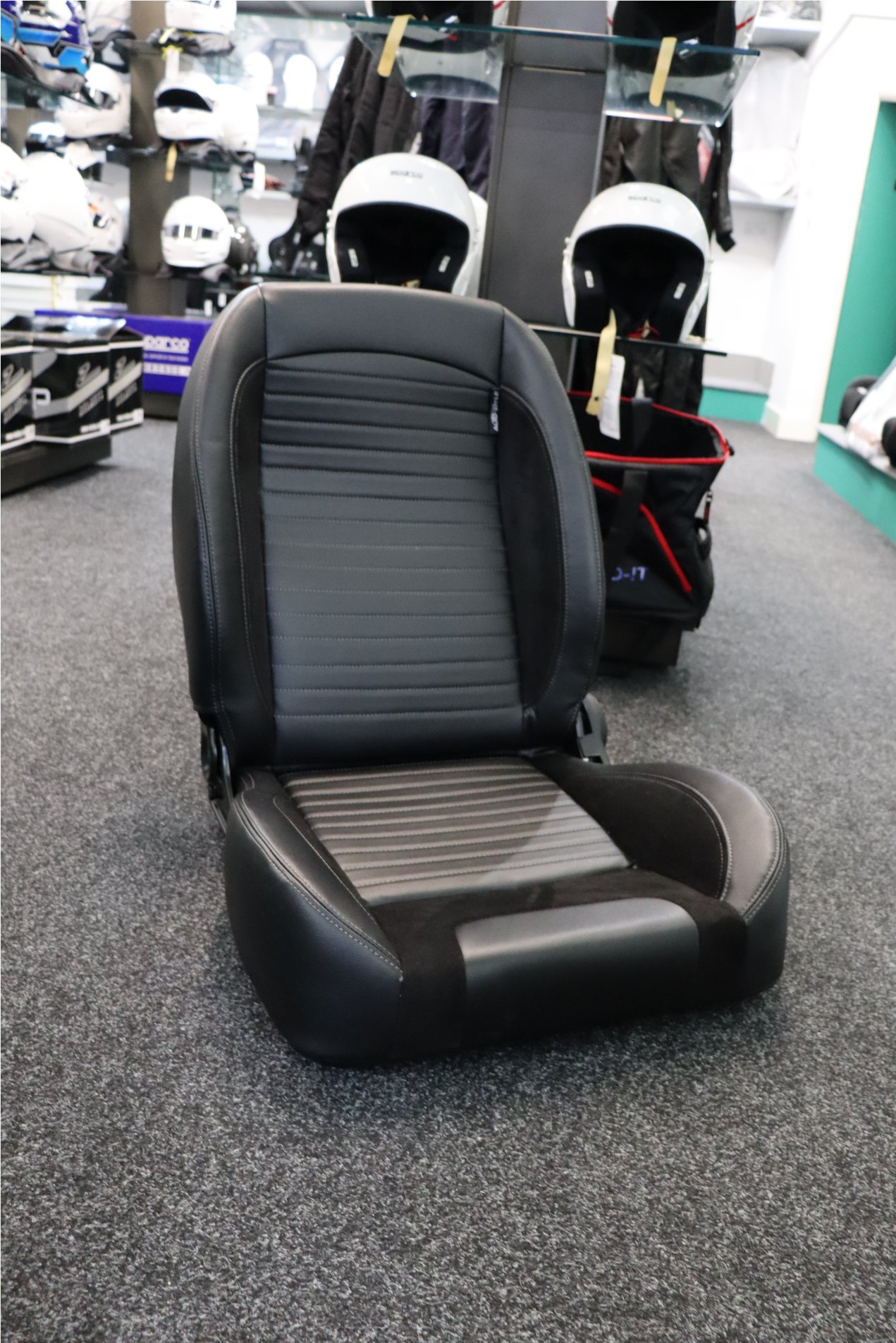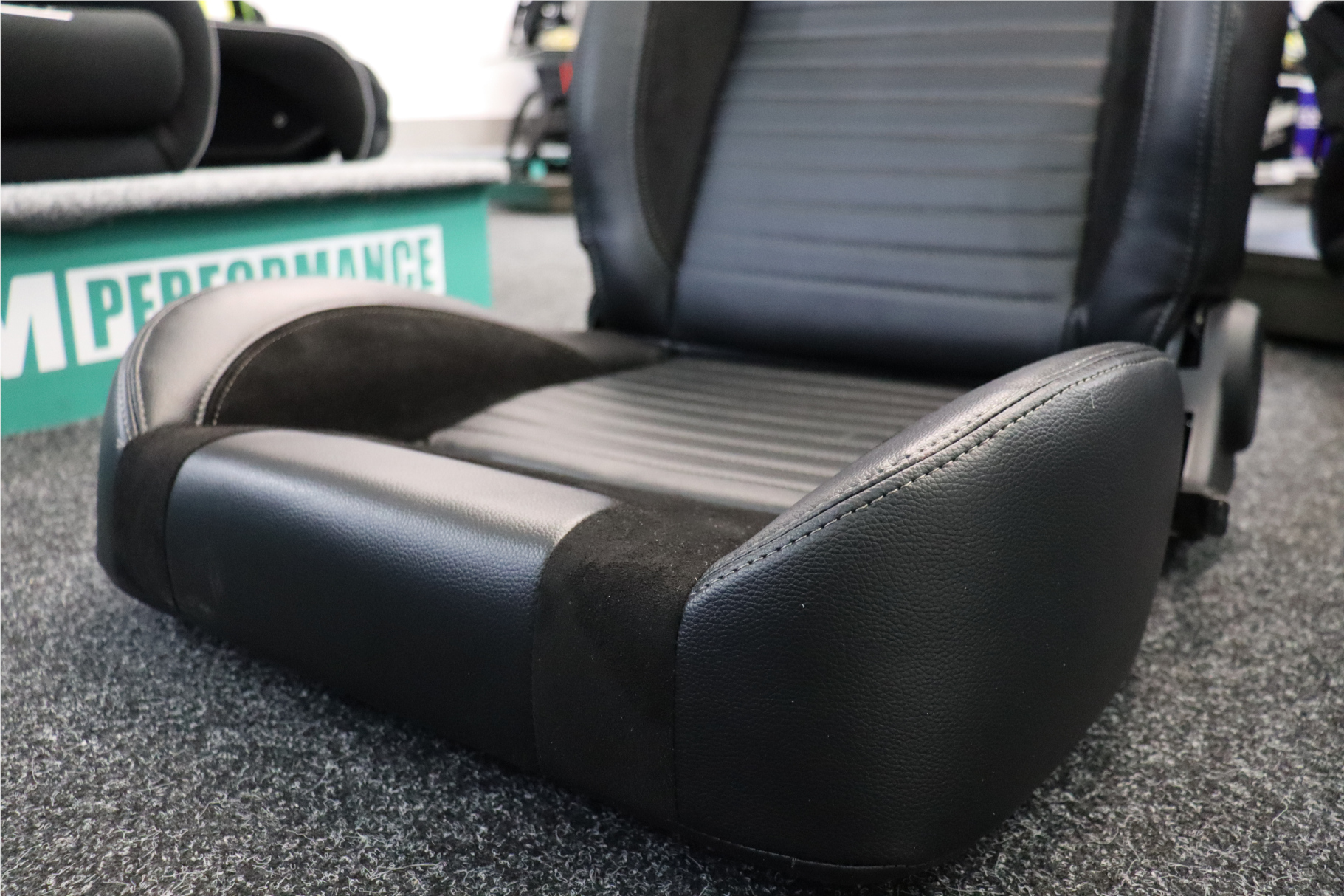 Trimmed in black synthetic leather outers, suede centers, and a grey topstitch these seats are stylishly classic in design.