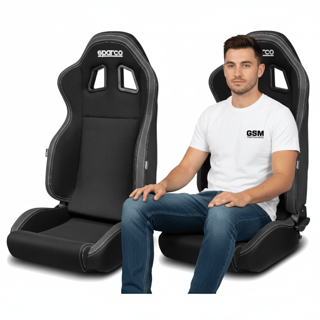 The Sparco R100 sport seat is lightweight, compact, and suitable for most cars. It has been built for comfort and support but its lower side bolsters and slightly narrower steel frame allow it to fit into vehicles where fitting seats with larger side bolsters may be difficult. The seat features backrest harness slots so that it can be used with a race-type harness or normal seatbelt, a high-quality recline mechanism for smooth and easy adjustment, and contrasting trim in a choice of colours.