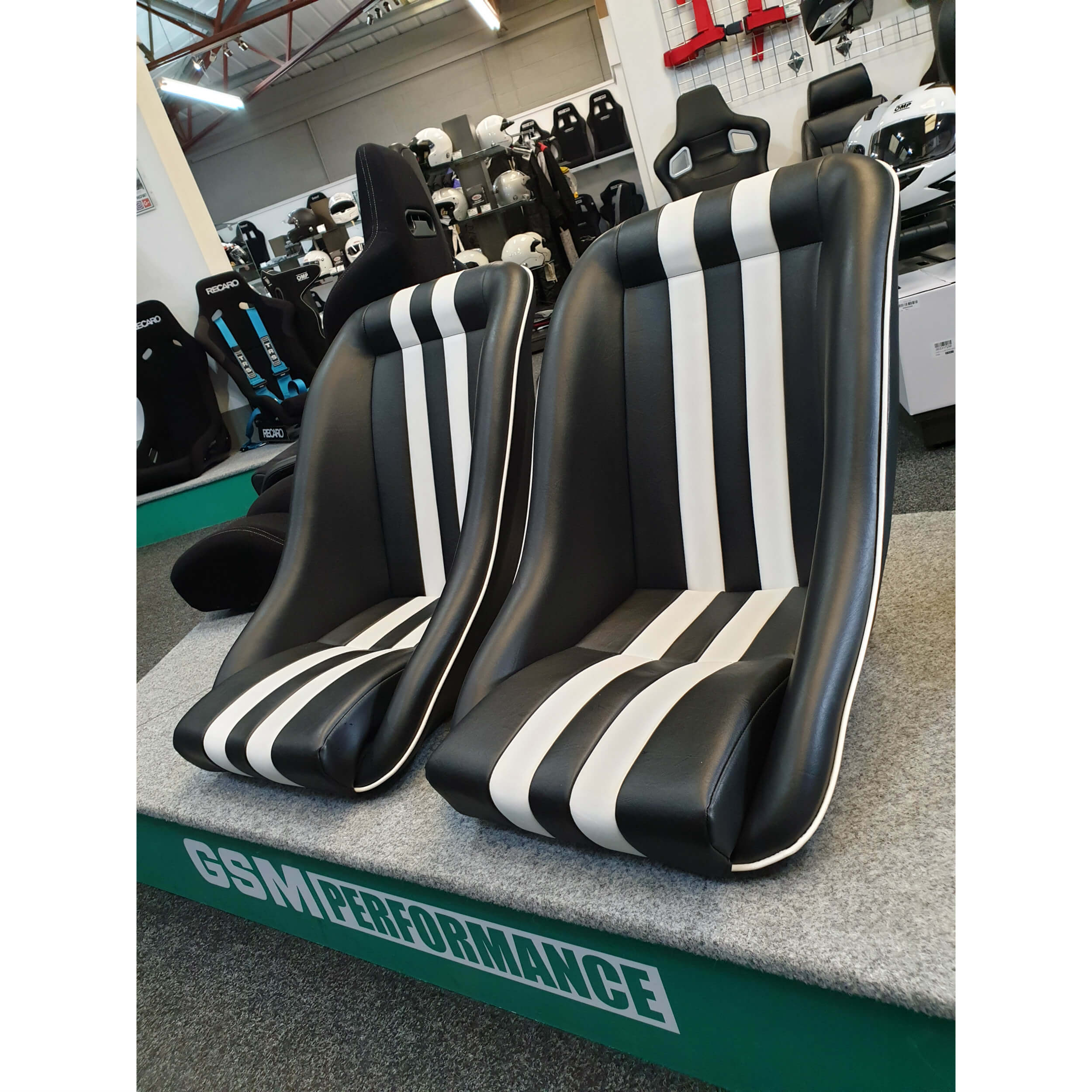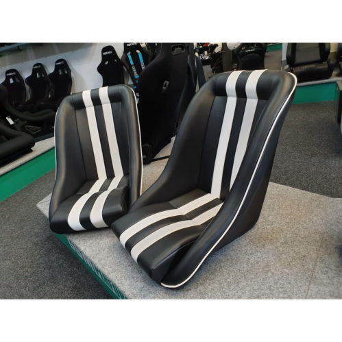 The Cobra Classic Twin Stripe Bucket seat is the hallmark of an original Cobra sports seat with deep bucketed sides and comfortable, well-rounded support but with a twist. As you can see this seat comes as standard with twin racing stripes as a critical and main part of the design of the seat. These two twin stripe colours can be selected from a range of colours. Constructed in a traditional manner and bearing the same styling that has made it famous for over two decades, the classic will always live up to its name.