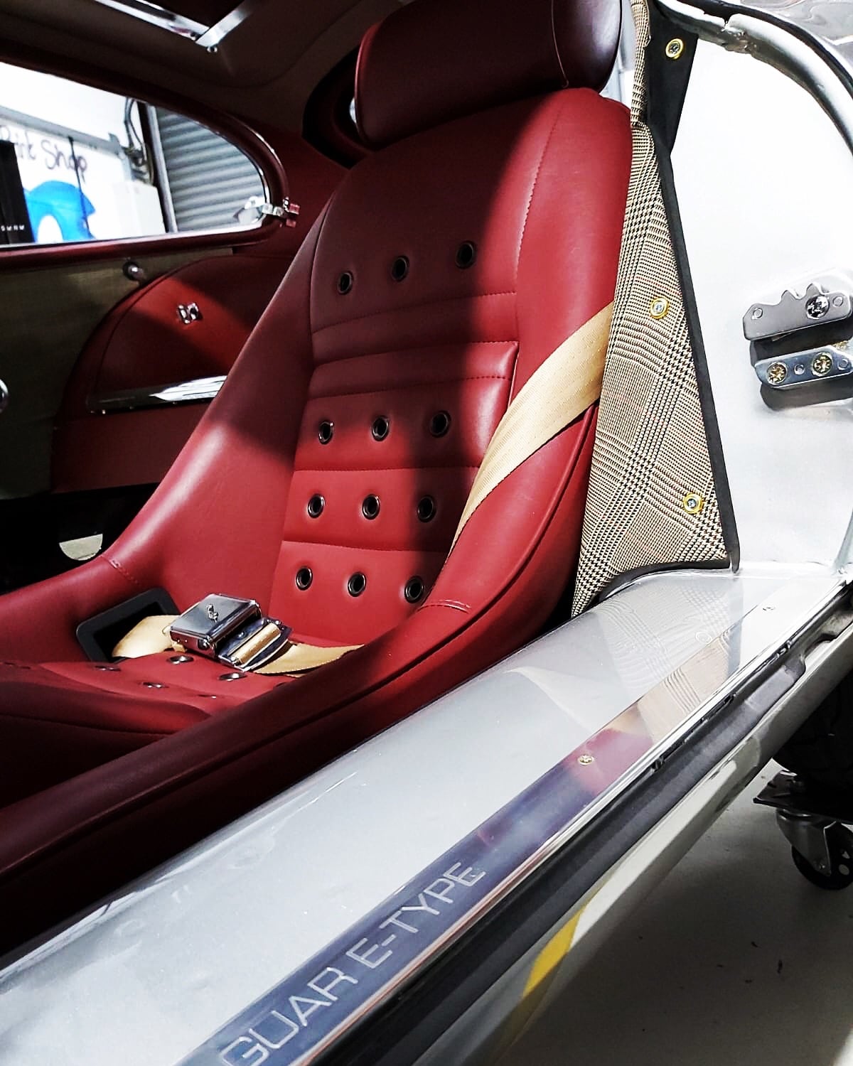 These seats feature a retro design with eyelets, as shown in the product image. Pressed into the back panel of the seat, these give a fantastic classic GT race car look.