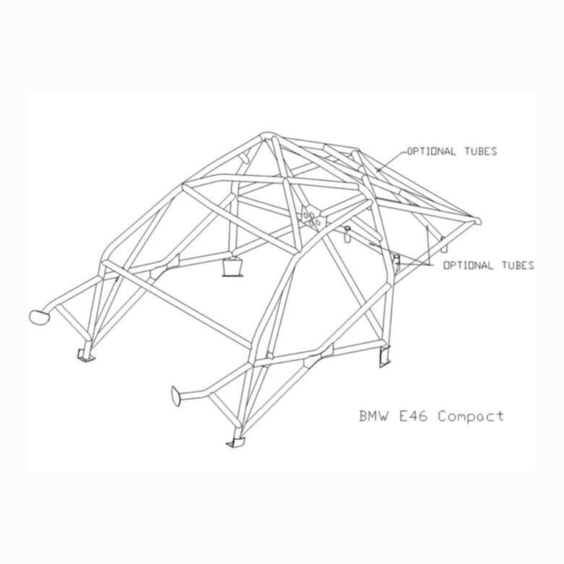The Custom Cages BMW E46 Compact International Multipoint T45 Roll Cage Kit is ideal for use in Hillclimb events, Sprints, Time attack, and Track days. This roll cage kit is FIA Certified, and MSUK Compliant. Your roll cage will arrive shrink wrapped in durable black plastic and will include: