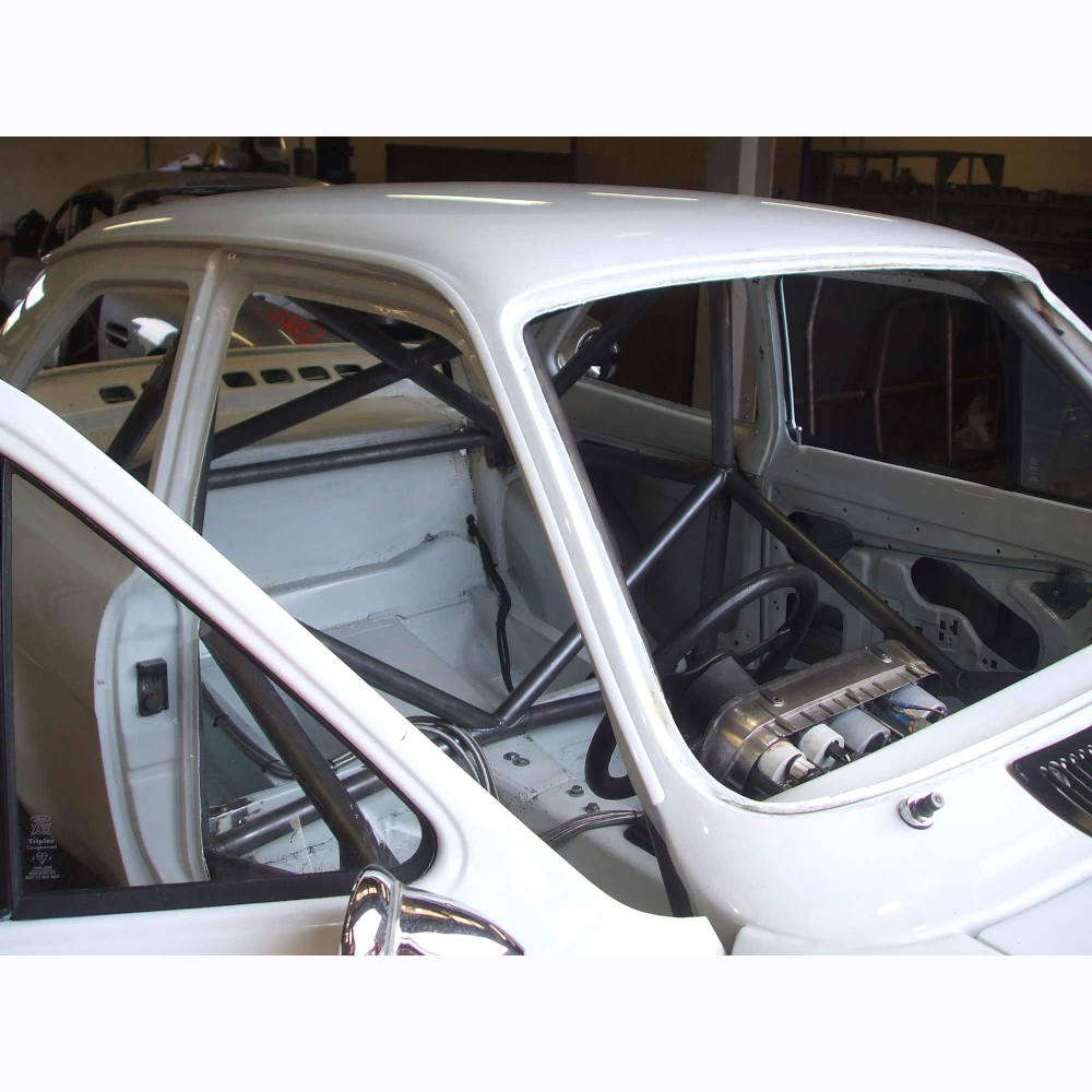 The Custom Cages Ford Escort MK1 International Multipoint T45 Roll Cage Kit is ideal for use in Hillclimb events, Rallying, Rallycross, Sprints, Time attack, and Track days. This roll cage kit is FIA Certified, and MSUK Compliant. Your roll cage will arrive shrink wrapped in durable black plastic and will include: