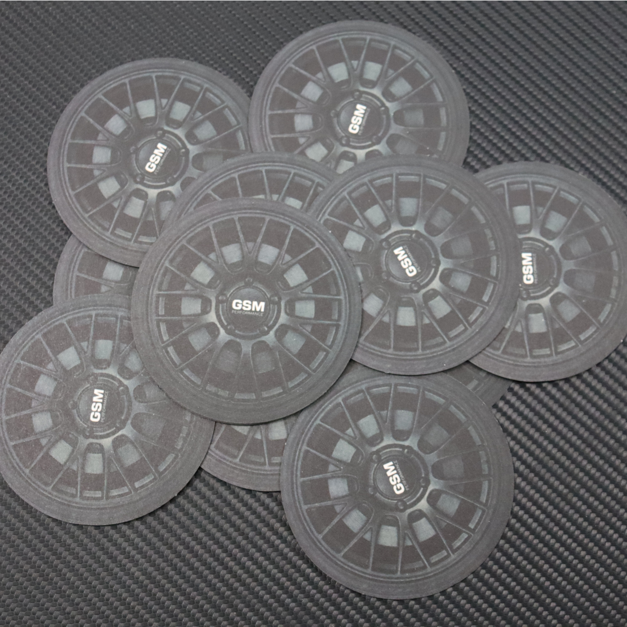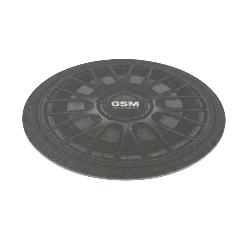 The GSM Performance wheel coaster features a detailed wheel design with a dark, understated finish and GSM Performance branding at the centre. Made to protect desks and tables from heat and moisture, it works just as well in an office setup as it does in a garage or workshop space. The subtle motorsport styling keeps it clean and practical while still giving a clear nod to performance car culture.