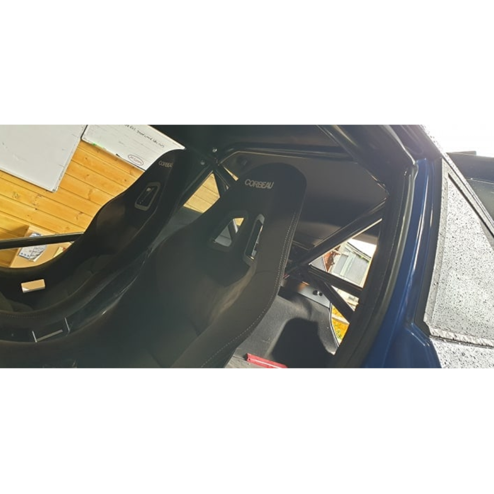 This cage requires the removal of one door and the centre console with gear select removed. After the removal of these, the rest of the car can remain intact… Trims, headlining, carpet etc.. simply manoeuvre the cage through the door then lift it into position over the rear arches.