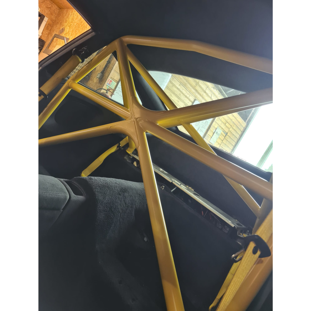- Place cage in the car through the passenger door by laying it face down with the rear legs pointing up, until the inner cage legs have cleared the centre console, then tip the cage back and push the rear of the cage behind the struts as far as possible to give clearance for the B pillar Hooks to go back on.