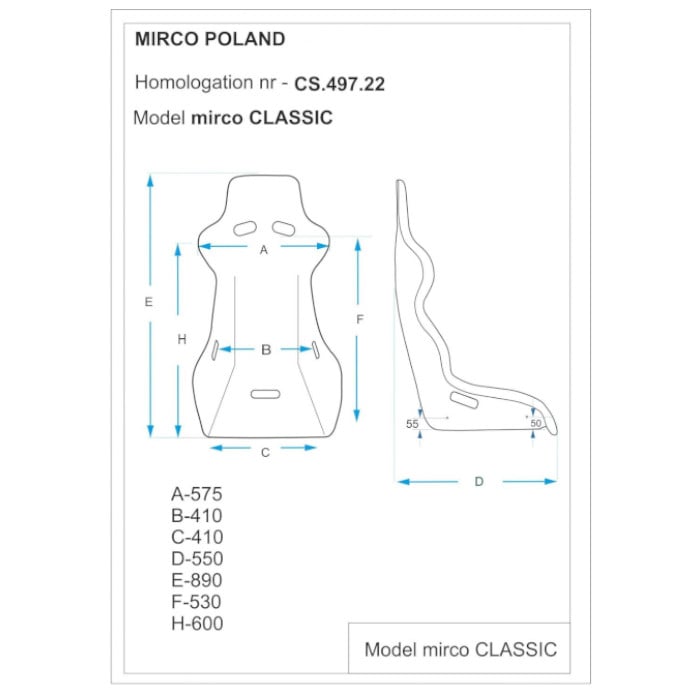 The Mirco Classic Vinyl Velour Edition FIA Fibreglass seat features a comfortable ergonomic design that includes removable leg support to help tailor the seat to most individual requirements. After testing this seat in-store we have been really impressed firstly by the build quality and secondly by the Mirco Classic’s high levels of comfort and support. It’s a really well-designed seat which we strongly recommend in this price bracket. The Mirco Classic Vinyl Velour Edition FIA seat is designed for “historical” and sports cars. The armchair is made of polyester-glass laminates, characterised by high durability, ensuring safety and comfort of use. Available in various material and color variants.