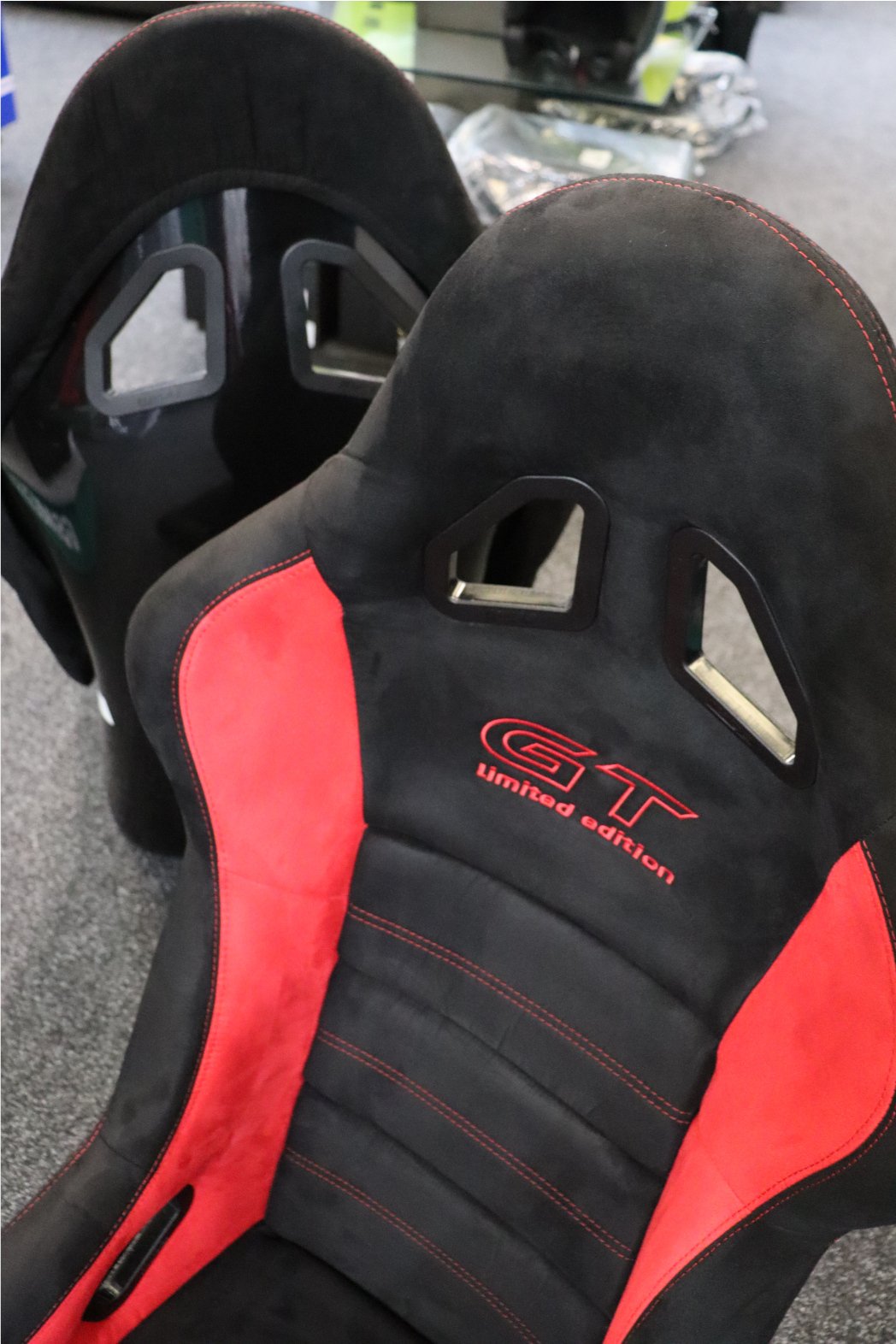 Pricing: Product pricing is for a single Micro-GT Black and Red Suede Fibreglass FIA Motorsport Seat