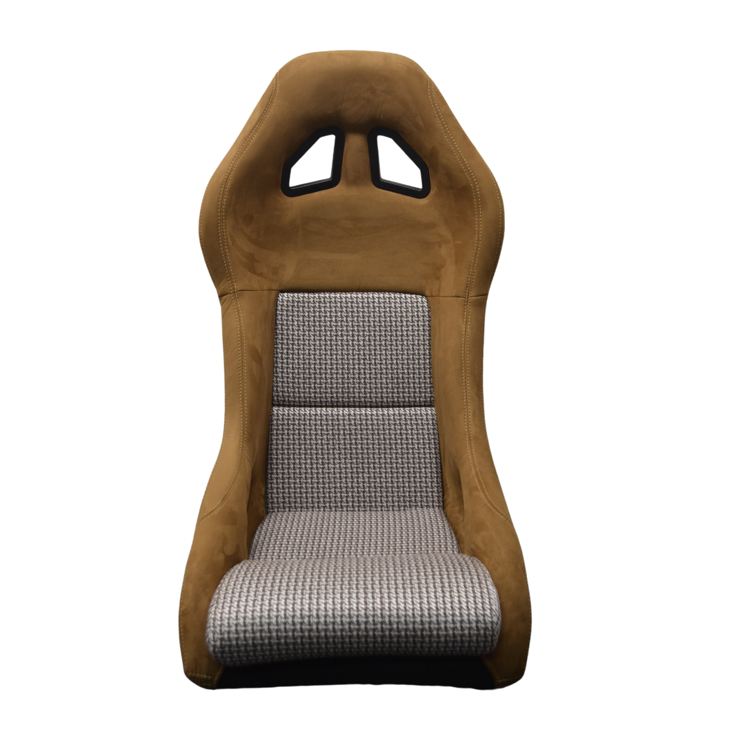 This is a classic version of the Mirco MX5 bucket seat. It features a brown suede trim with Houndstooth fabric on the back and base cushion panels. Shell colour options are available for this seat.