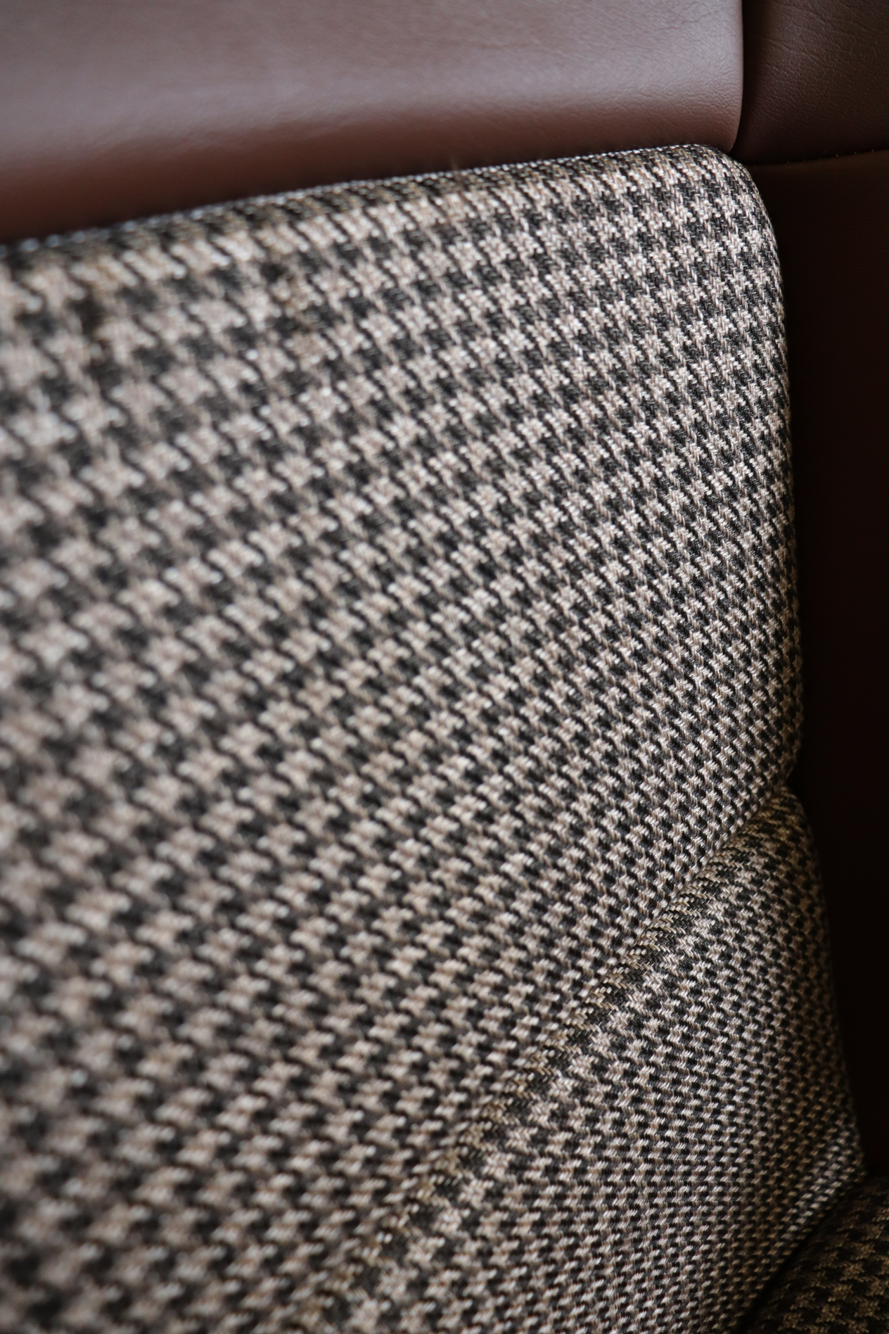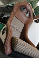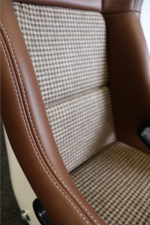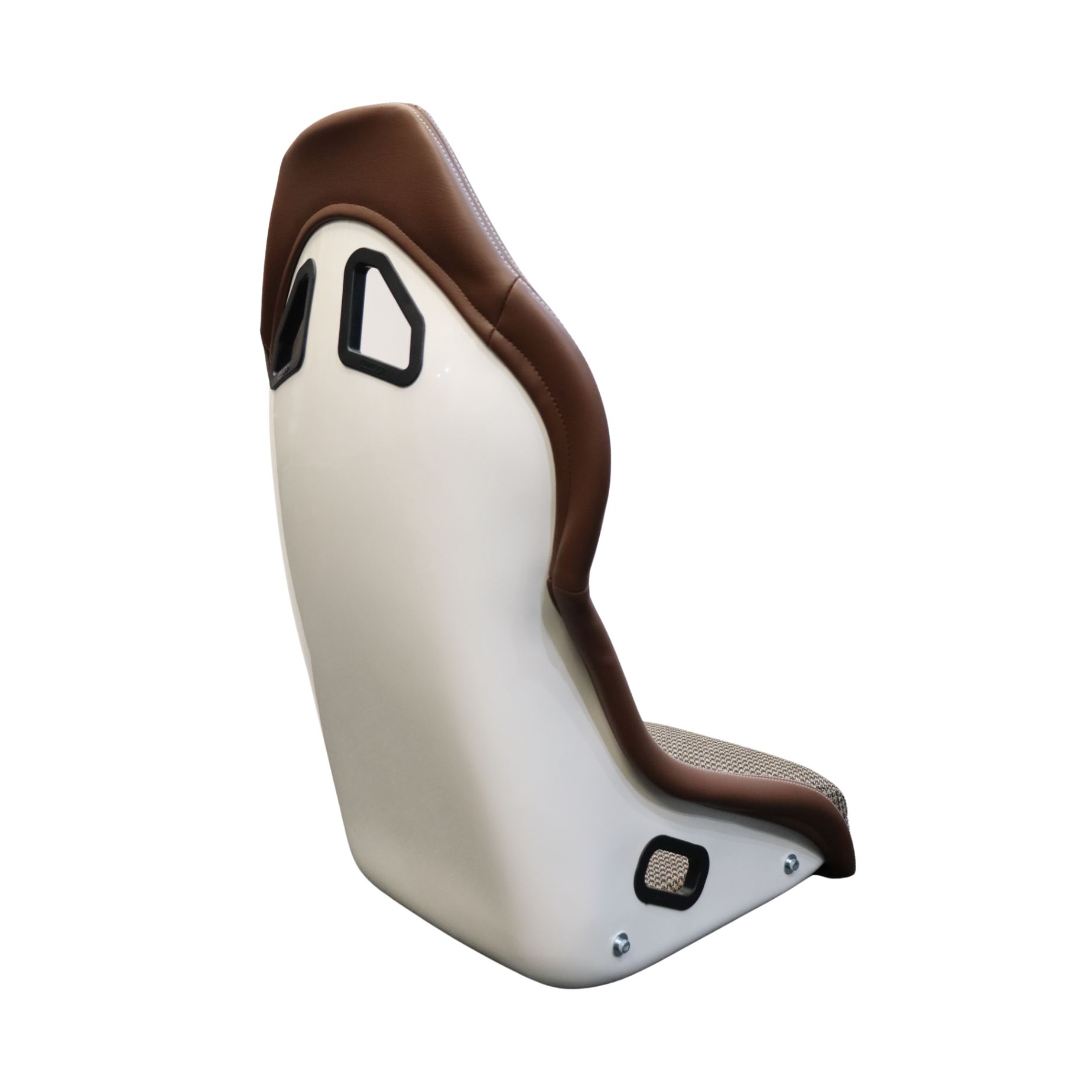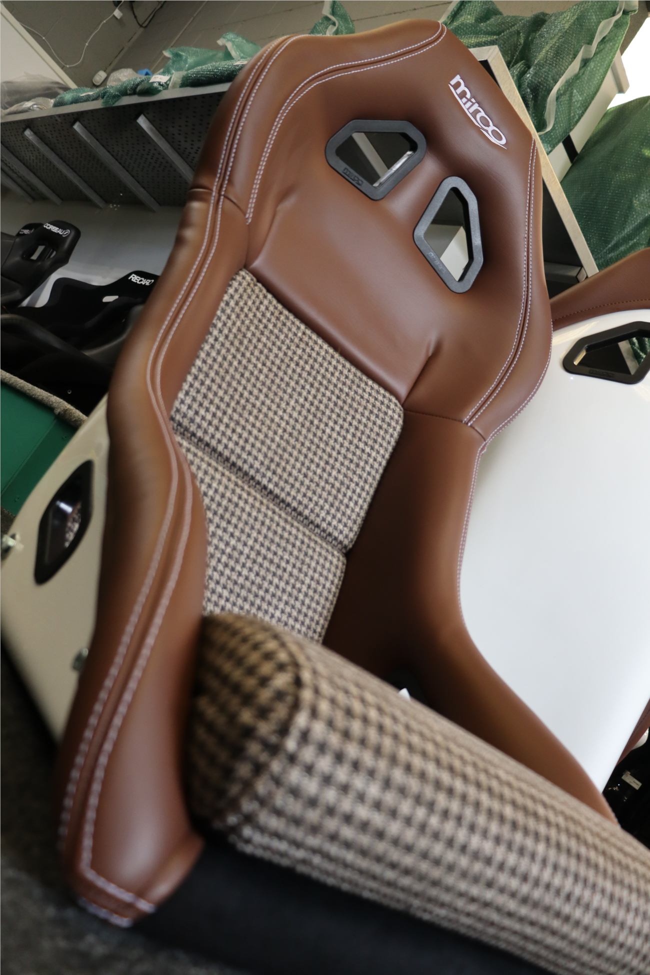 This is a classic version of the Mirco MX5 bucket seat. It features a brown vinyl trim with Houndstooth fabric on the back and base cushion panels. Shell colour options are available for this seat.