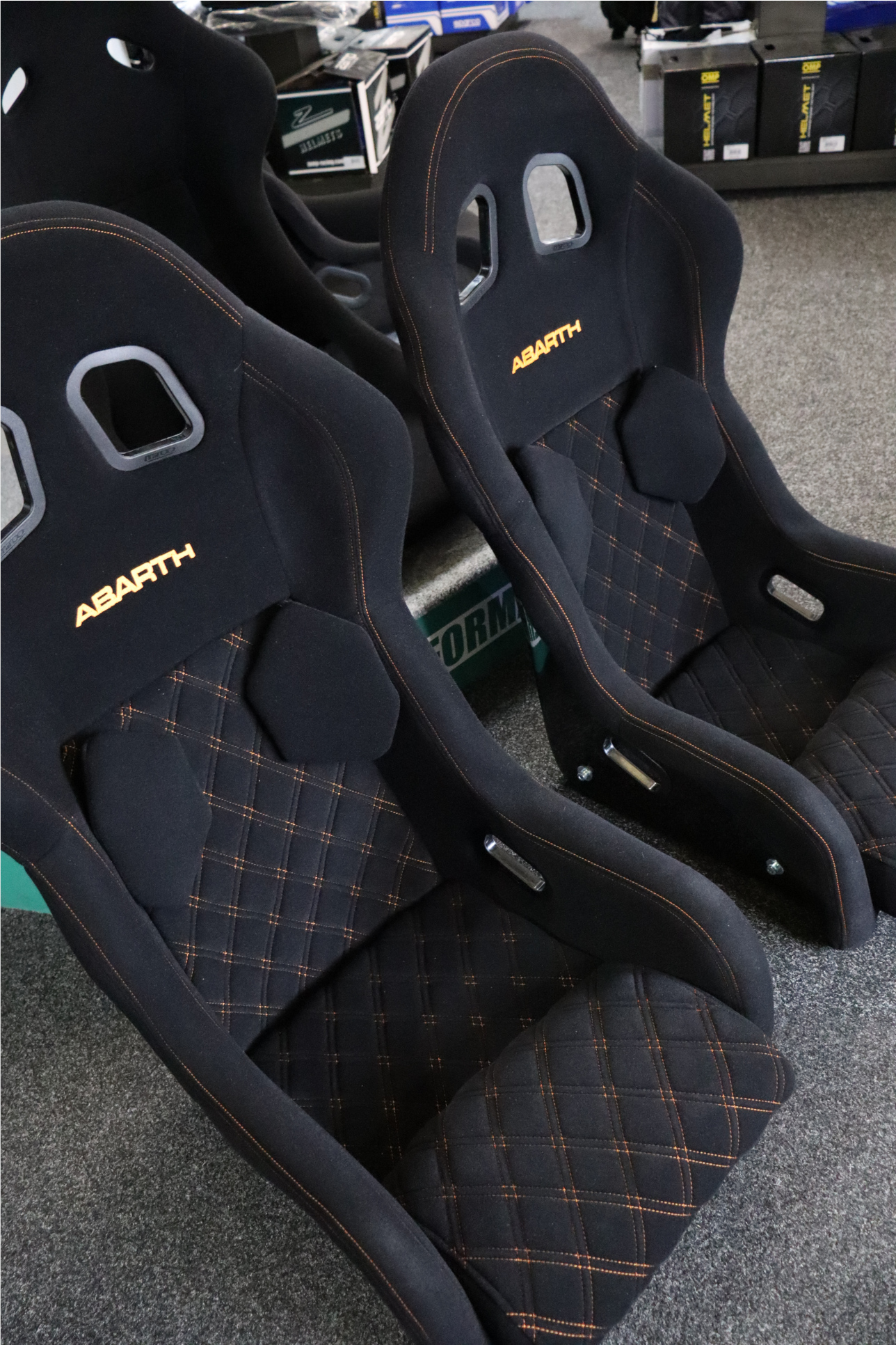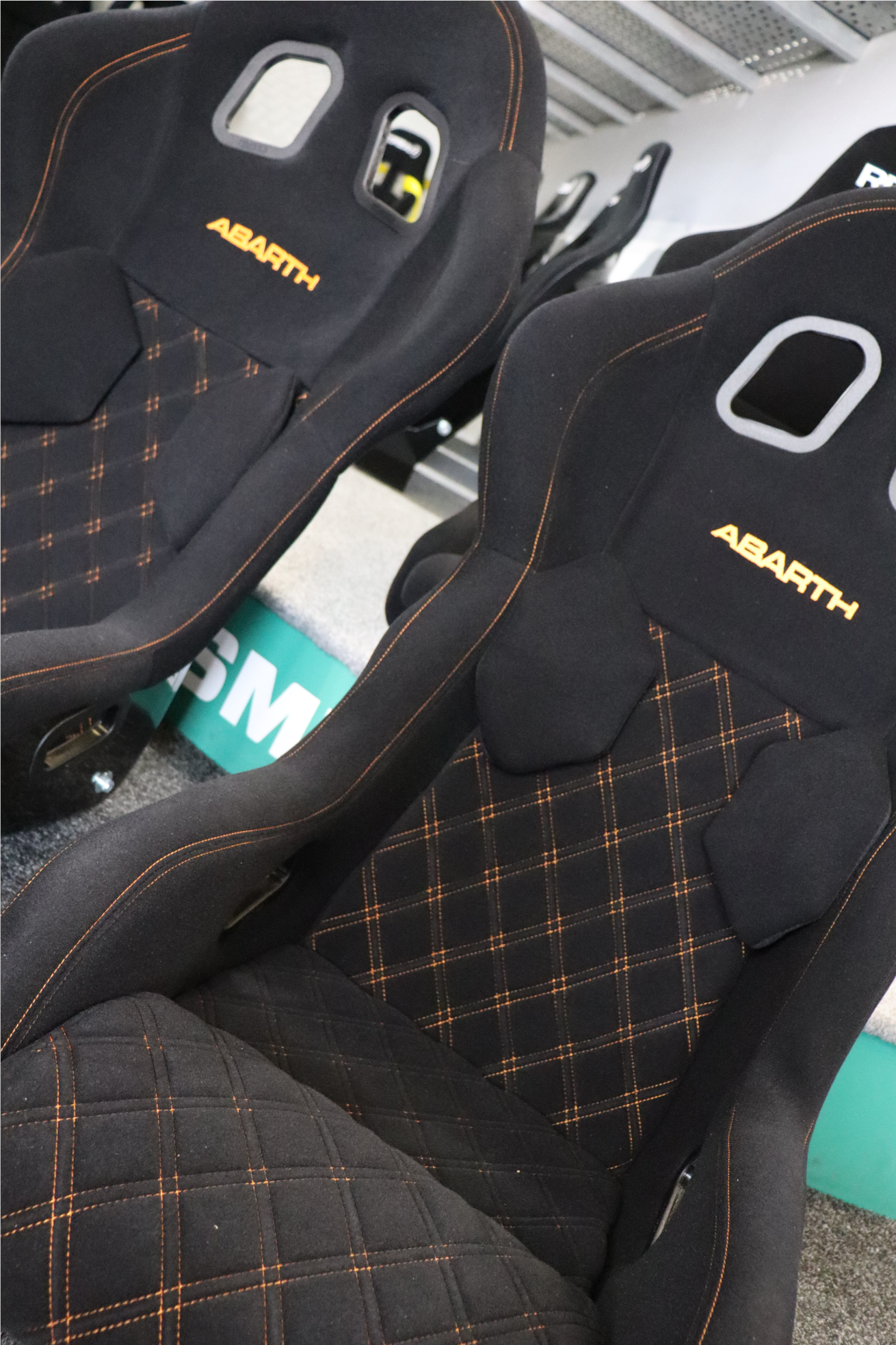 Custom Stitching Colour: The stitching colour can be changed with the drop-down menu above, this will change all the stitching featured on the seat including the Abarth embroidery. This seat comes with orange stitching as standard.