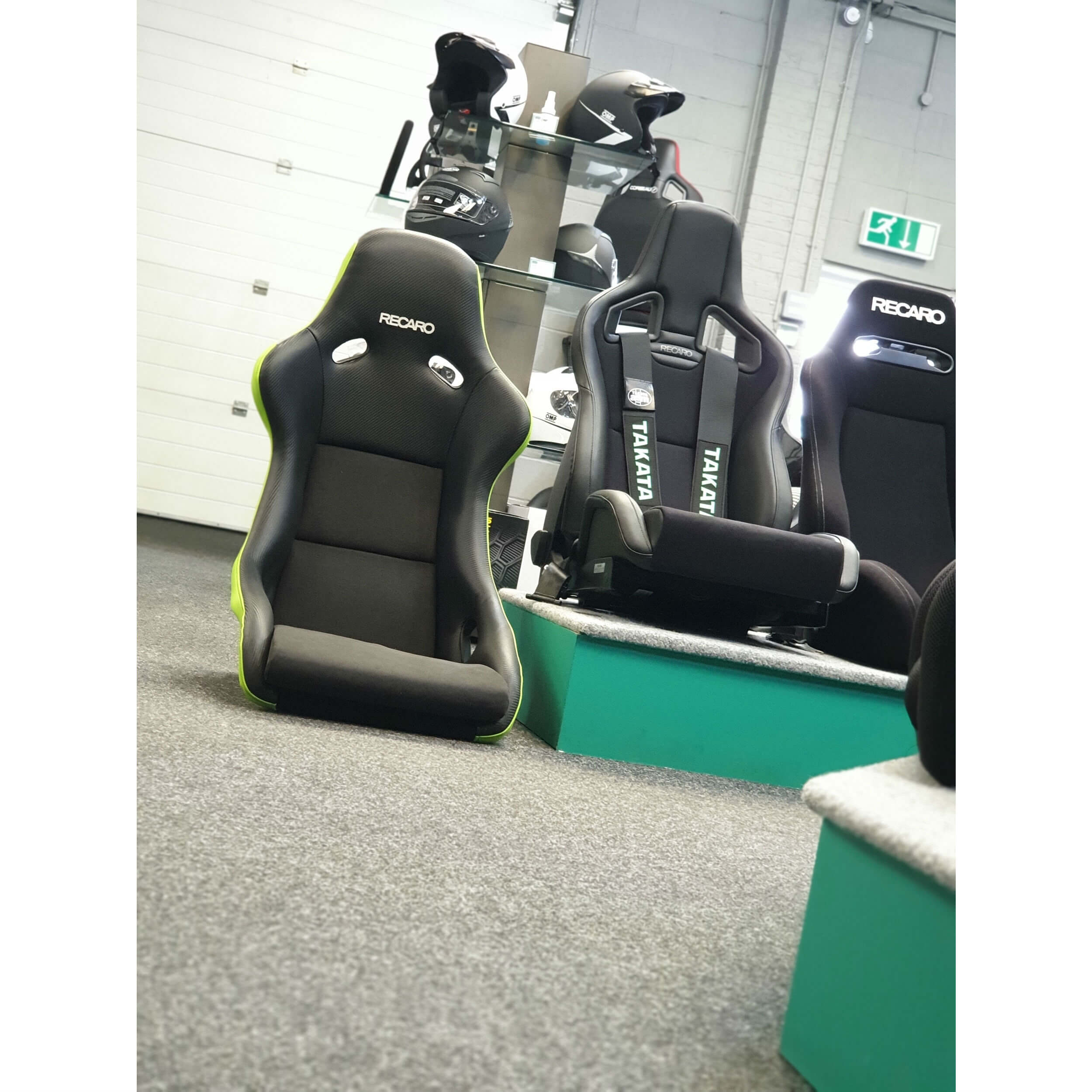 Recaro Pole Position 2018 Edition Bucket Seats are the latest design and generation of the world-famous Recaro Pole Position. Celebrating 50 years of their first race shell. This seat is the same as the Pole Position ABE with exclusive Carbon leather and black Dianamica suede fabric, with a light green leather border and white contrast stitching. Only 300 seats are being made and a unique aluminum plaque with the serial number to emphasise its authenticity.