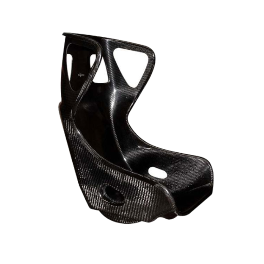 The XR C Twin Skin seat with head support is a lightweight bucket seat made from carbon fibre, with a polished carbon fibre frame. This seat provides increased support to the leg and kidney areas whilst also offering protection to the head & neck. The XR C features a curved seating position allowing the driver to sit deeper in the seat, with their legs slightly elevated which reduces the pressure on the legs and kidney areas, allowing you to drive for longer, feeling less fatigued. The harness slots are designed to allow the use of head & neck support safety restraint systems if required. This extremely light and rigid seat is non-FIA approved so is perfect for track days and everyday road use