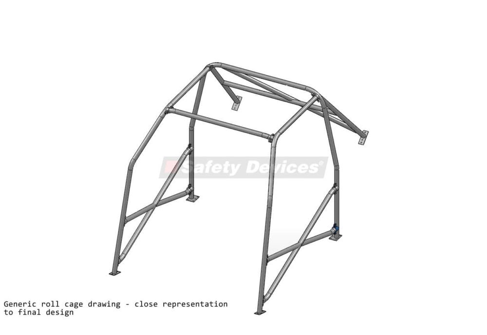 Roll cage number R023. 14-point multi-point bolt-in roll cage. A stripped-down version of R019. Please choose through the options and select the roll cage components that match your requirements.