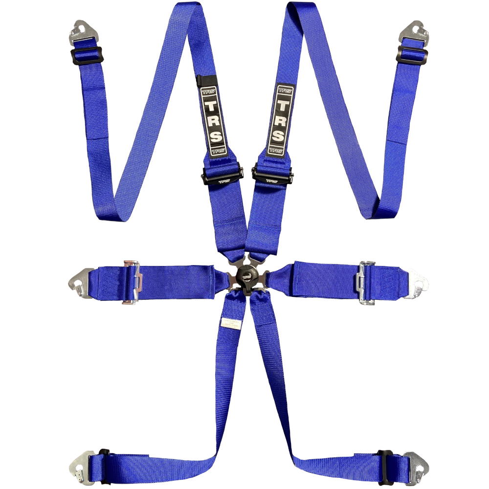 TRS Magnum 6 Point Superlite HANS FIA harness belt is a top of the range Magnum harness which uses 75mm webbing and alloy adjusters on the shoulders only. Available as 4 or 6 point for all saloon cars and in 7 colours. FIA and SFI homologated.