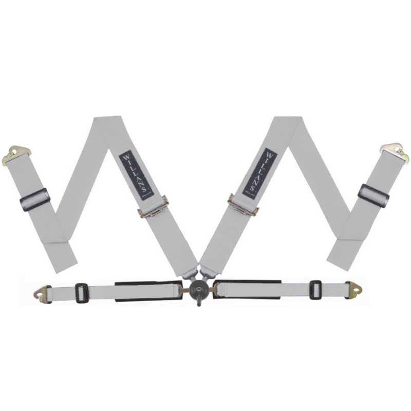 This Willans Club 4×4 Saloon harness is a 4-point Saloon race/rally harness with 50mm (2 inch) wide lap straps and 75mm (3 inch) shoulder straps, with steel belt adjusters and clip-in end fittings. All straps are fully adjustable using Willans own steel adjusters for control of wearer straps; Straps are sewn together for easy use with single tongue insertion on fastening.. This harness features Willans new lightweight, planted aircraft type rotary multi-point release box. Harness approved to FIA 8854-98