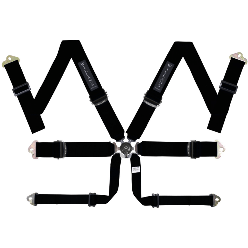 This Willans Silverstone LDT6 harness is a 6-point Saloon race/rally harness with 75mm (3 inch) wide lap straps and 75mm (3 inch) shoulder straps, with steel belt adjusters and clip-in end fittings. All straps are fully adjustable using Willans own steel adjusters for control of wearer straps. This harness features Willans lightweight, planted aircraft-type rotary multi-point release box. Straps are sewn together for easy use with single tongue insertion on fastening. This harness is approved to FIA 8853-2016 standards.